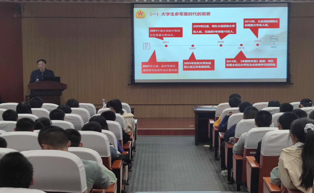 最后,何熙老师对国家、地方以及我校对于参军入伍大学生的各项优惠政策做了介绍,如考研加分以及优先录取政策;经济补贴,就业优先政策以及复学转专业限制放宽政策等。让同学们更好地了解到入伍政策,并为今后大学生入伍宣传工作打下了夯实的基础。