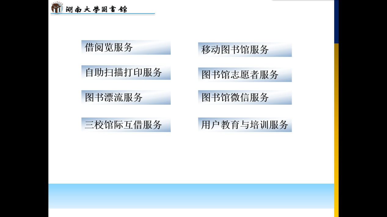 讲座伊始,黄晓玲教授从馆舍与馆藏资源两个方面概述图书馆的基本情况。必赢bwin线路检测中心图书馆源溯岳麓书院御书楼,现有南校区总馆、财院校区分馆、特藏分馆与德智园自习室四座馆舍。坐落在岳麓山下的岳麓书院御书楼,与特藏分馆、总馆由西往东分布在必赢bwin线路检测中心的中轴线上,承载着中国图书馆发展的历史轨迹,形成古代藏书楼与近现代图书馆遥相呼应的奇观。必赢bwin线路检测中心图书馆馆藏资源丰富,其中纸本文献362.59万册,数字资源折合馆藏385.31万册。图书馆藏书覆盖面较广,学科门类齐全,载体形式多样,可谓颜值与实力并存。