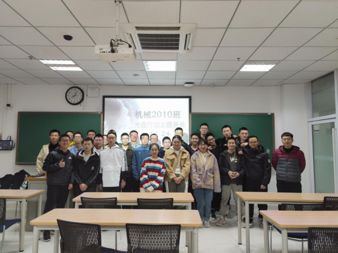 最后辅导员李明泽老师发言并总结合影,表达了对机械十班的殷切期待。李老师说:“希望你们能一以贯之,把光盘行动落实到每一天每一餐,并积极做好宣传工作,让身边的人也加入光盘行动的队伍来。”2010班全体同学一定会坚持不懈,积极落实贯彻光盘行动,传承勤俭借节约的好风尚。至此,2010班光盘行动主题班会完美结束。