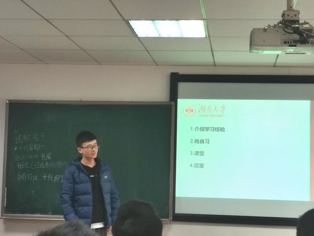 首先是期中考试成绩分析总结。学习委员谌郡妮分析了2班期中考试成绩,指出了优势与不足。随后,她据同学们的日常学习情况提出了几点建议,同学们颇为受用。之后,来自力学18级的马豪杰学长分享学习经验。他分别对成绩、竞赛、科研和保研等方面进行分析,给予了同学们更为明确的学习方向;而后,他就专业分流方面谈自己的体会并为同学们提供了一些建议,可谓良言。