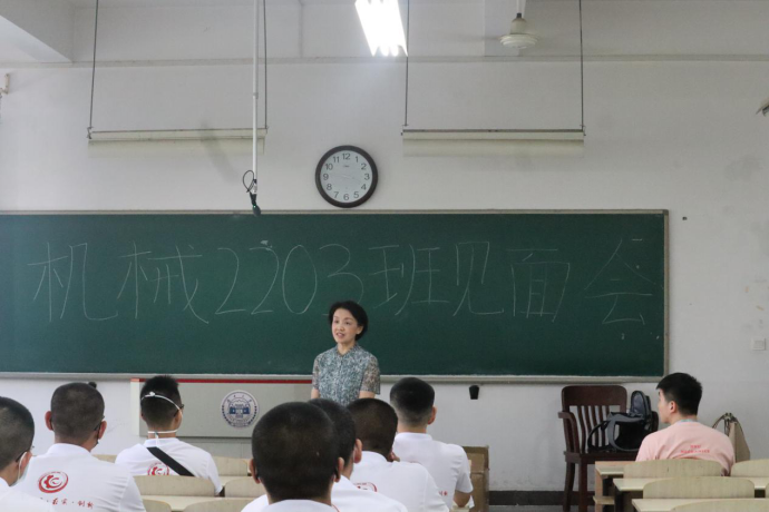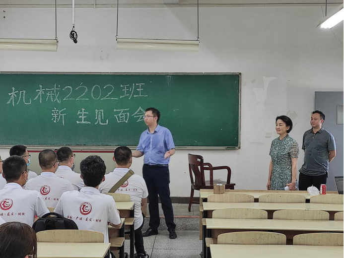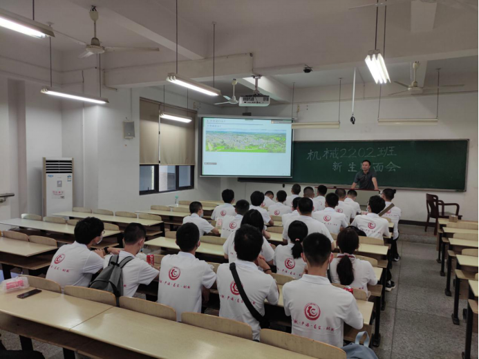 8月21日下午,必赢bwin线路检测中心2022级全体新生第一次班会在综合楼召开。各班班会分别由各班新生班级助理主持,机械院党委书记彭晓燕、教师代表刘侃老师及各班新生班主任共同参加。