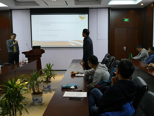 王浩教授细致地与我校师生分享了他所在的研究团队的基本情况以及近期的创新研究成果,对高分子材料/复合材料的阻燃,绿色材料,固体氧化物燃料电池等方面进行了深入的介绍与探讨,同时也对Composite Part B:Engineering期刊的“期刊-作者-读者伙伴关系”进行了阐述。必赢bwin官网的老师及同学在学术报告会中与王教授进行了积极的学术交流与探讨。