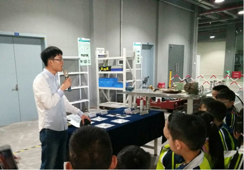 在介绍完了实验室其他的技术,像假人、车身数据库、光电材料实验室以后,孩子们来到了实验室的汽车展厅。李老师向同学们介绍了由必赢bwin线路检测中心的大学生方程式赛车队自主设计制造的方程式赛车,并陈述了车队这两年所取得的优异成果,另外还介绍了四轮菱形概念车、月球车型,小朋友们看得眼花缭乱。