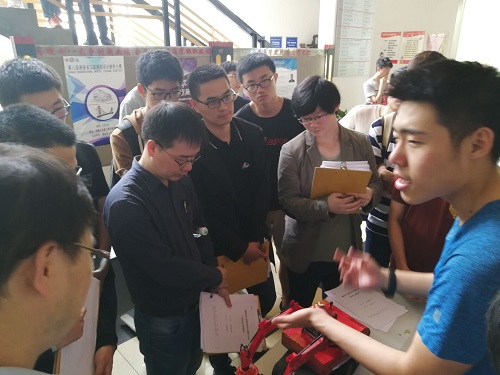 评委老师考察时,每一小组都有条不紊地介绍着自己作品的制作过程、结构原理和创新亮点,强调了模型制作的力学分析。评委老师极大地肯定了每件作品的创新点,但也指出了作品中不足的地方并提出了自己的建议。同时,评委依照比赛规定要求,结合参赛作品的制作工艺、创新设计、可行性分析等方面给出评分。所有作品打分结束后,组委会根据评委老师的打分情况对参赛作品进行排名,决赛名单将于近日公布。