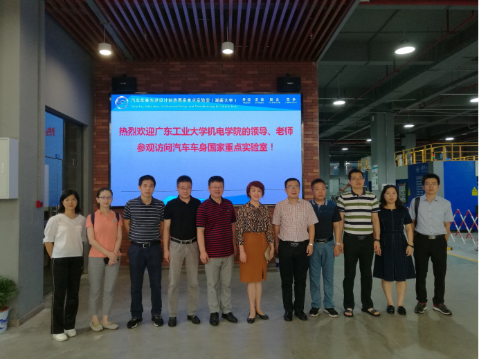 2019年7月12日上午,广东工业大学机电学院的领导和老师一行参观考察汽车车身先进设计制造国家重点实验室。学院党委书记彭晓燕教授等接待了来访客人,实验室李彬老师为来访客人进行了讲解。