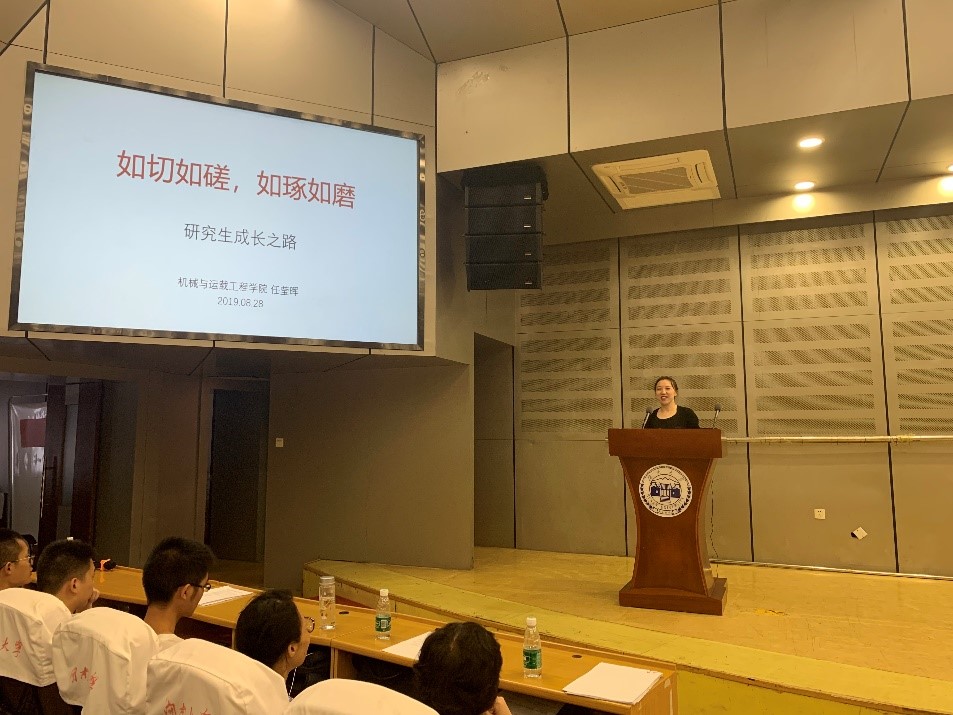 机械学院硕士生导师任莹晖副教授结合自己求学时的经历,以“如切如磋,如琢如磨”为主题,作了精彩报告。她鼓励年轻学子要养成前沿文献阅读和整理的习惯,主动地和导师交流文献阅读和科研中遇到的问题,鼓励青年科研人员应该富有批判和敢于挑战权威的精神。