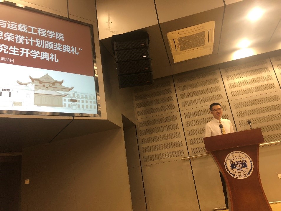 2019级博士研究生金其多代表新生发言。他与同学们分享了自己在湖大的学习经历,他说,作为新时代的博士生要敢于担当时代赋予的使命和责任,要敢于做创新者,勇于做原始创新者。