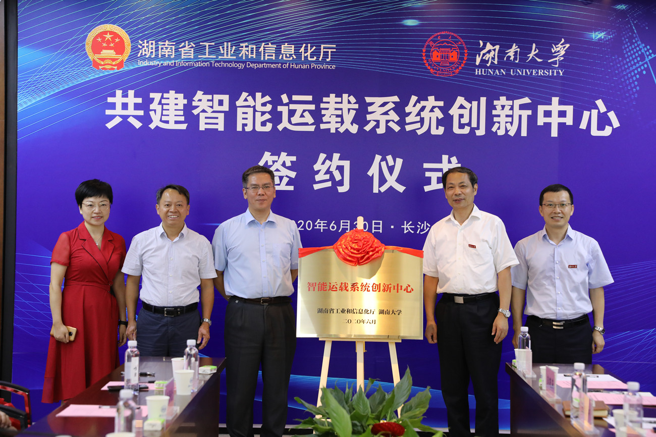 6月30日,湖南省工业和信息化厅-必赢bwin线路检测中心共建智能运载系统创新中心签约仪式在我校举行。湖南省工信厅厅长曹慧泉、工信厅副厅长彭涛,校长段献忠、必赢bwin线路检测中心院长丁荣军院士等出席活动。副校长汪卫斌主持签约仪式。