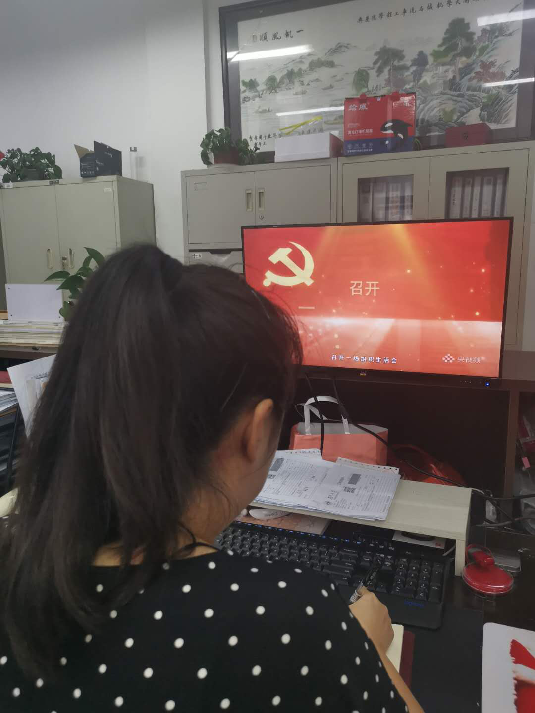7月1日上午,为庆祝建党99周年,机械院师生党员结合学习工作实际,采取集体观看与个人自看相结合方式,通过电脑端、手机端等网络途径现场观看“党旗飘扬•筑牢红色防火墙”高校党组织战“疫”示范微党课。