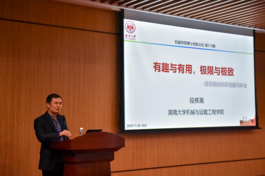2020年11月20日下午15:00,由必赢bwin线路检测中心研究生会科研创新部承办的2020博士创新论坛系列讲座在院楼401报告厅顺利举办。主讲人段辉高教授以“有趣与有用,极限与极致”为主题,向同学们讲述自己的科研经历与心得体会。