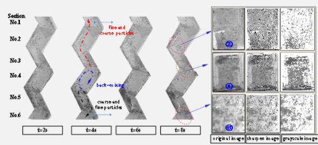 关于含多倾斜截面的新型Z字形流化系统的研发,可应用于异形异质多组分混合物的有效分离,并有望用于未来工业原材料的纯化。研究提出的高速流化生物质在线图像识别技术是对传统多相流PIV测量方法的重要补充,有助于深入理解复杂流化管道中的混合颗粒的动态演化过程。